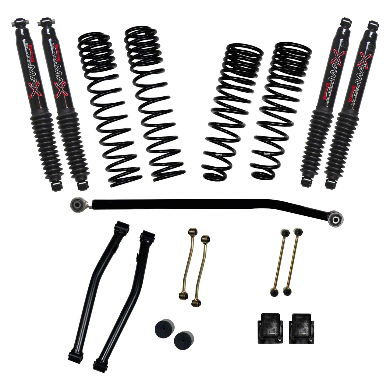 Smooth and Controlled Driving Experience. Enhance your lifted Jeep Gladiator’s on-road and off-road performance by installing this SkyJacker 3.50-Inch Dual Rate Long Travel Suspension Lift Kit with Black MAX Shocks. With its high-quality components, SkyJacker guarantees that your all-terrain adventures will be more stable and controlled without the unwanted bouncing on rugged trails. This kit includes dual-rate long-travel coil springs, Black MAX shocks, sway bar links, front lower links, adjustable track bar, and bump stop spacers to provide your JT with improved dynamics and an appealingly confident off-road stance.