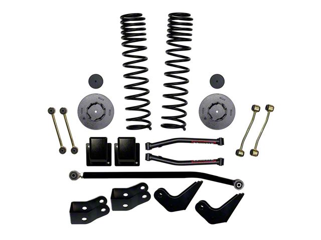 Construction and Appearance. This Suspension Lift Kit is constructed with precision-engineered dual rate long travel coil springs, designed to offer superior handling and performance across all terrains. The increase in ground clearance not only improves off-road navigation but also significantly enhances the vehicle's stance, giving it a more imposing and rugged appearance. Despite the substantial modification it provides, the kit is designed to maintain the vehicle's factory ride quality, ensuring that comfort is not compromised.