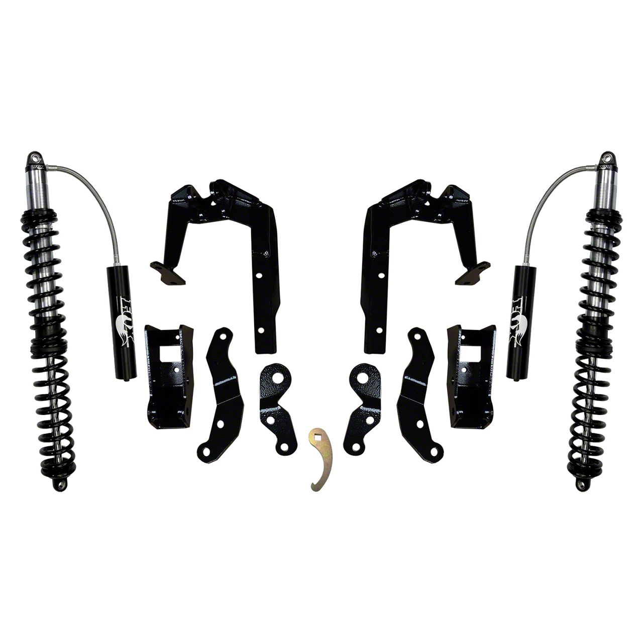 Heavy-Duty Coil-Over Brackets. The set of upper and lower coil-over brackets and remote reservoir brackets are made from laser-cut construction and covered in a black powder coat. Using these components prevents bottoming out your suspension with heavy hauling. In addition, they offer proper alignment and ensure that the entire suspension system works perfectly well with the rest of your off-road set-up for a bolder and safer experience.