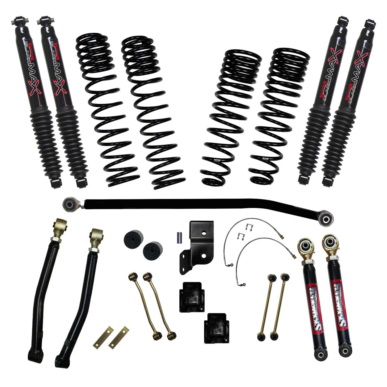 Increases Ground Clearance. Equipping your truck with this SkyJacker 6.50-Inch Dual Rate Long Travel Suspension Lift Kit with Black MAX Shocks helps bring out its optimum off-road potential. By increasing your vehicle’s ground clearance by 6.50 inches, you can easily conquer the steepest and most challenging trails.