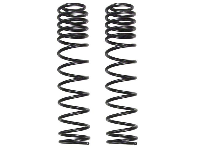 Application. These Skyjacker 2-Inch Dual-Rate Long Travel Coil Springs are engineered for use on the front of 2018-2025 Jeep Wrangler JL 2 Door models, not equipped with the Rubicon package.