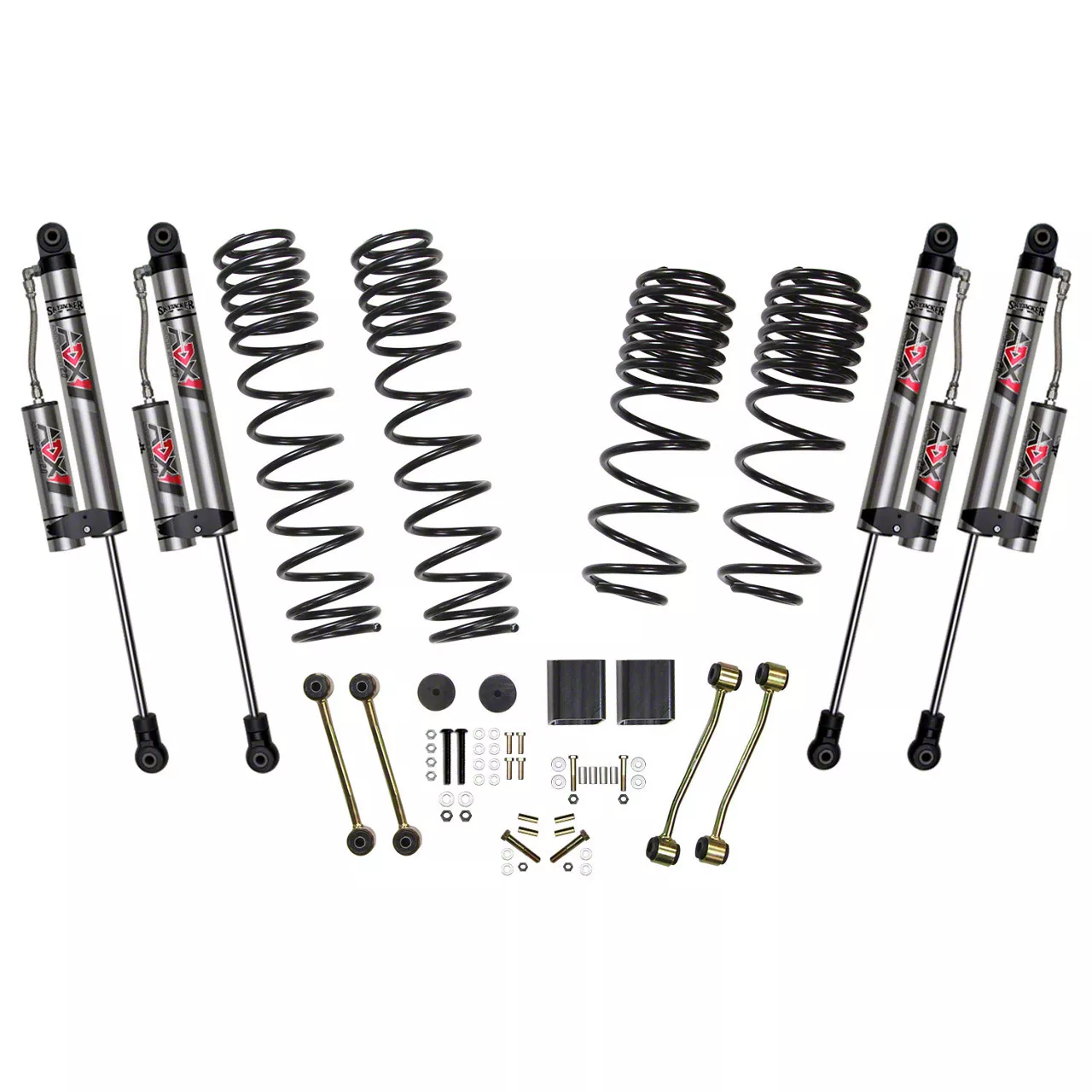 Lift and Safe. An added height of 2 inches to your Jeep and improved overall off-road performance while maintaining comfort and stability is possible with the SkyJacker 2-Inch Dual Rate Long Travel Suspension Lift Kit and ADX 2.0 Remote Reservoir Shocks. This suspension lift kit includes ADX 2.0 Remote Reservoir Shocks. Its aluminum monotube offers better heat dissipation and the Teflon-banded piston adds stability.