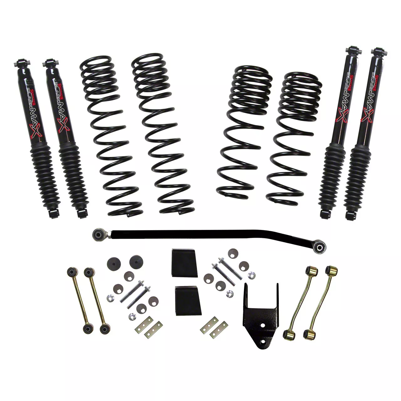 More Powerful Off-Road Vehicle. Transform your Jeep into a more powerful off-road vehicle by installing this SkyJacker 3.50 to 4-Inch Dual Rate Long Travel Suspension Lift Kit with Black MAX Shocks. With this suspension lift, your Jeep will become more capable of overcoming obstacle-filled paths since it gives your vehicle an additional lift of 3.50 to 4 inches. Also, with the extra height, your Jeep will be able to exhibit a more aggressive stance.