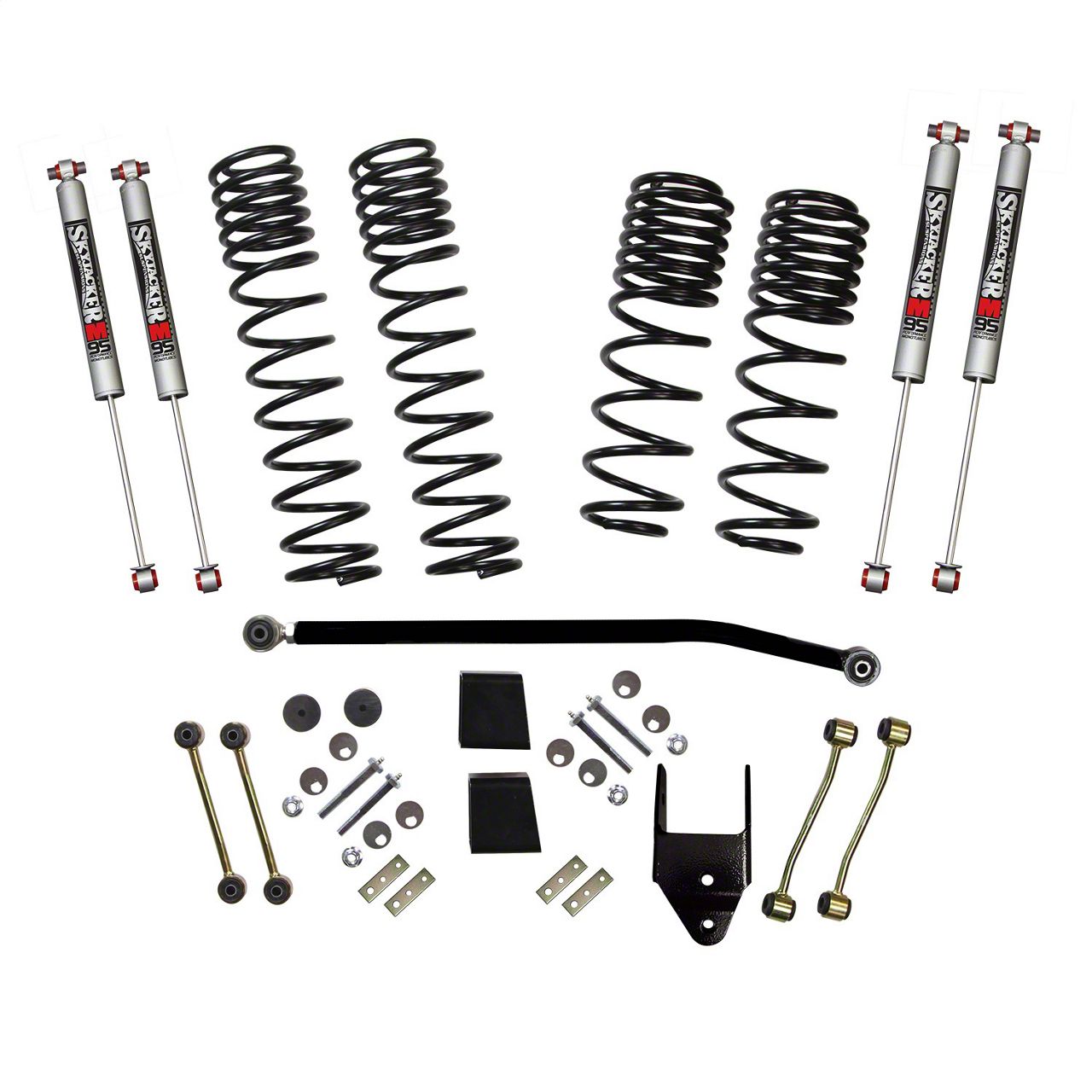 Equipped with M95 Monotube Shocks. For a less bouncy ride, SkyJacker packed this suspension lift kit with M95 monotube shocks. These shocks are able to absorb shocks and impacts, preventing your vehicle from shaking or exhibit swaying or up and down movements.