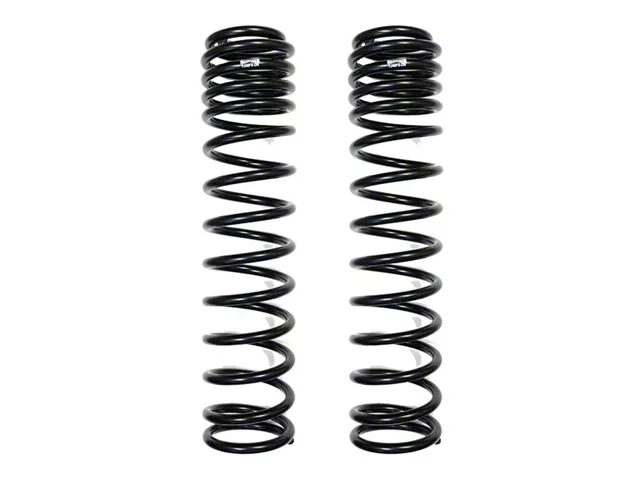 Improved Stability. The Jeep Wrangler 4-Inch Dual Rate Long Travel Front Lift Coil Springs features a dual-spring long-travel coil system that utilizes two different coils that compress for different uses and allow greater traction on any terrain. Complete with a 4-inch drop and increased axle droop, these springs provide greater balance and articulation for your wheels so that you can gain greater control over your steering wheel, regardless of your application.