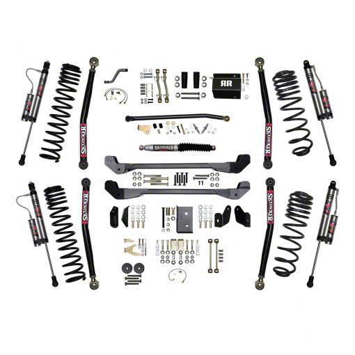 Comprehensive Upgrade. This lift kit is designed to transform the Jeep into a more formidable off-road vehicle while improving ride quality. The inclusion of advanced suspension components like remote reservoir shocks and dual-rate coils allows for greater travel and adjustability, ensuring superior handling across diverse terrains.