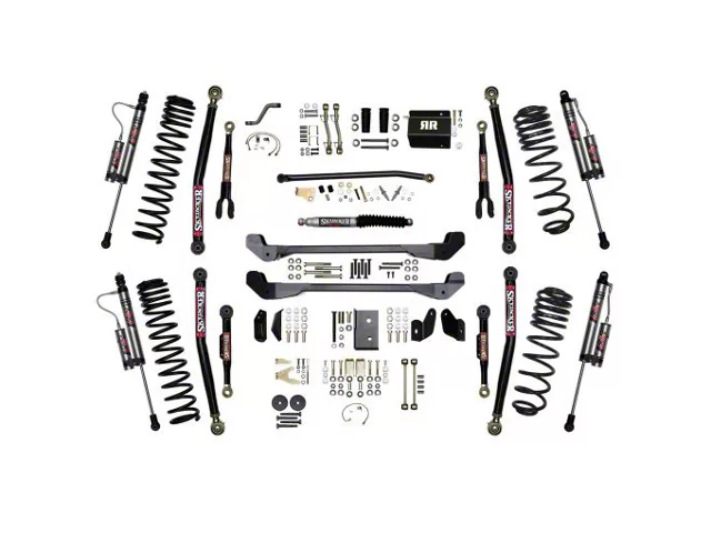 Performance and Style. Elevate your off-road and on-road experience with the SkyJacker 6-Inch Rock Ready Suspension Lift Kit, designed for those who demand both performance and style. This comprehensive kit includes ADX 2.0 Remote Reservoir Shocks and upper and lower flex links, allowing for a significant lift height of 6 inches. Crafted for compatibility with up to 35-inch tires, it seamlessly blends notable on-road drivability with unparalleled off-road handling.