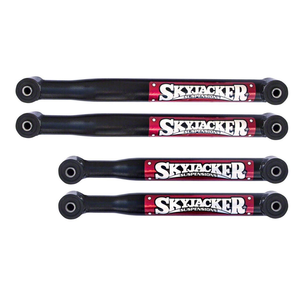 Solid Lift. Made for the Jeep Wrangler JK models, this SkyJacker Suspension Link Arm Kit comes in a set of 4 with a matte black finish. Built to give your ride a solid lift of 2 to 5 inches, this link arm kit gives your ride a more aggressive ground clearance and is a perfect companion for off and on-road drivers.