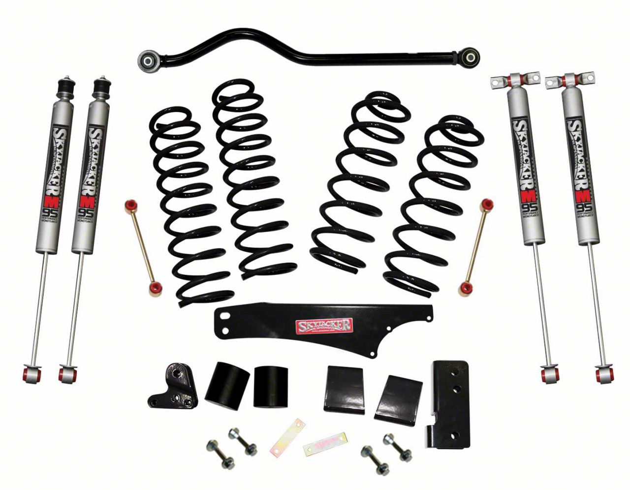 Adjustable Track Bar Included. The SkyJacker 4 in. Softride Lift Kit w/ M95 Shocks & Adjustable Front Track Bar comes with a track bar that allows you to adjust it to meet your needs. You can tune your track bar, when needed to improve the stability and wobble in your Jeep.