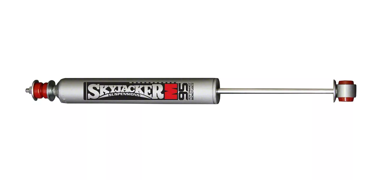 Powerful Shock Absorber. The SkyJacker M95 Performance Rear Shock Absorber for 1.50 to 3-inch Lift makes your truck even more capable of conquering extremely rugged terrain with greater ease. Its high-pressure nitrogen gas and floating piston design allow you to experience smoother driving on or off-road. Meanwhile, its polyurethane bushing is designed for extra shock absorption, so you can push your truck harder on the trails without compromising its ride quality.