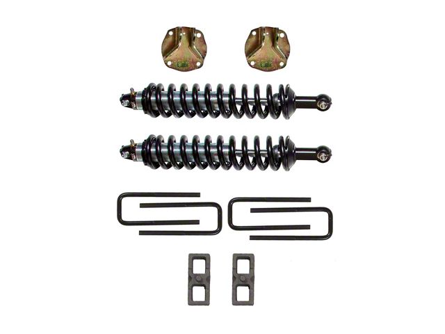 Flat Rear Lift Blocks. To give your truck a rear-end height boost, this suspension kit comes with a pair of 1.25-inch flat rear lift blocks. They have a simple design and a sufficient lift height that will not interfere with the original driveshaft angle. To make sure that they stay in place even in rough conditions, these blocks are secured by a heavy-duty U-bolts.