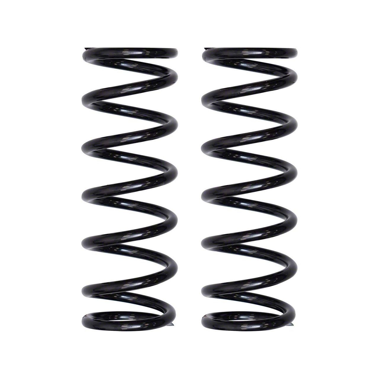 Skyjacker’s legendary Softride® coil spring technology engineered processes achieve exact height and precise coil spring rates. Known for phenomenal Softride® performance, Skyjacker's precision engineering gives you off-road responsiveness with smooth consistence handling characteristics. The process starts with high tensile chrome silicon wire, an advanced method of shot peening and a presetting process. Each coil spring is blasted (shot peen) with hard steel pellets at very high velocities. Shot peening compresses the surface of the steel thereby increasing the tensile strength of the spring.Compressing the spring completely down to where the coils touch (solid height) is preset. This takes any fatigue or stress off the spring and eliminates sagging. Every coil spring has endured a cycle test to assure the very best in quality. Coilover coil springs end configurations are closed. Each coil springs end configurations is ground flat to create a flat surface perpendicular to the spring axis for even surface. This flat surface delivers an even distribution of spring force to the working assembly and improves ease of assembly.All Made in the USA with a stylish, extremely durable protective powder-coated black finish that resists corrosion.
