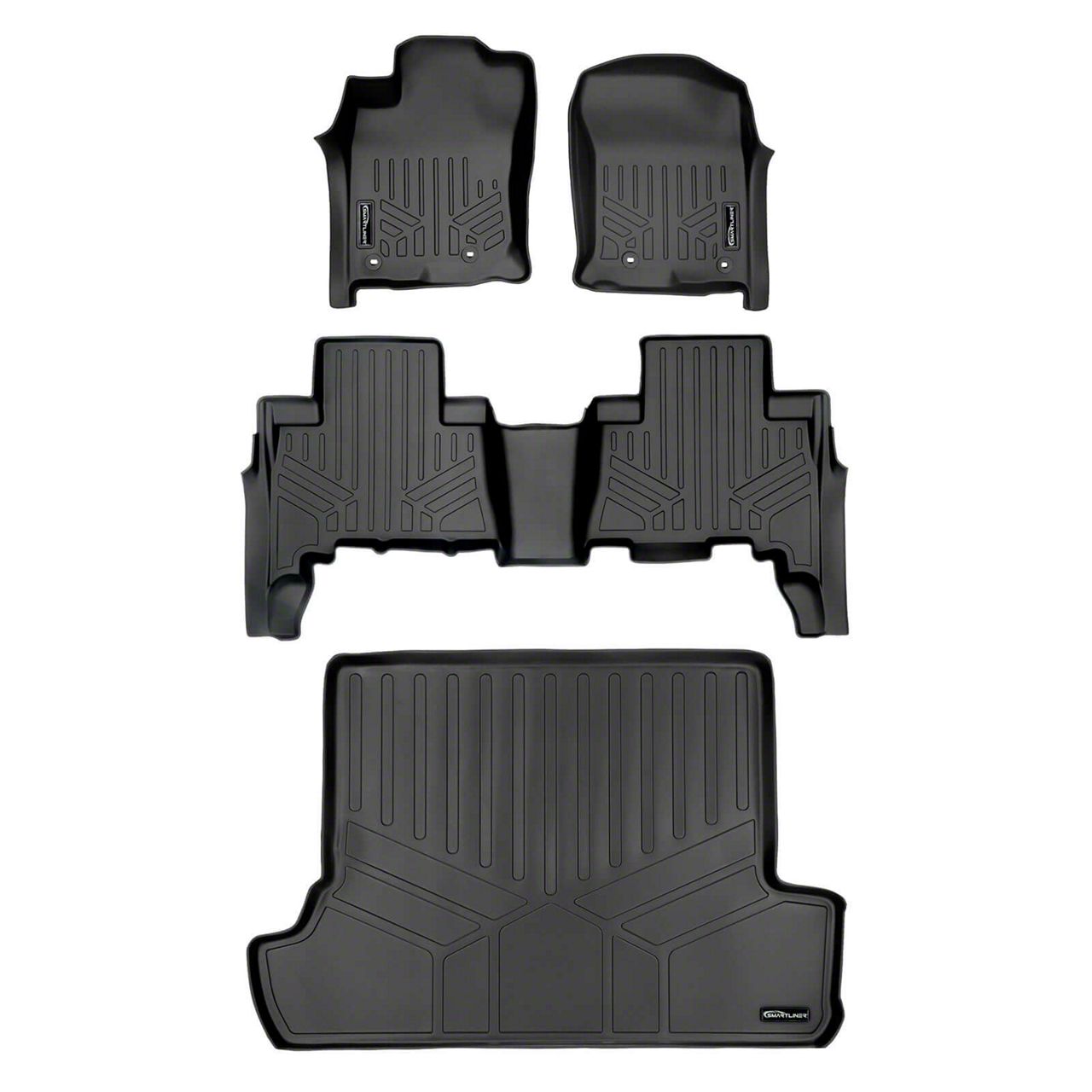 Application. This SmartLiner Smart Coverage Custom Fit Front, Rear, and Cargo Liners set fits 2013-2024 4Runner with third-row seats.