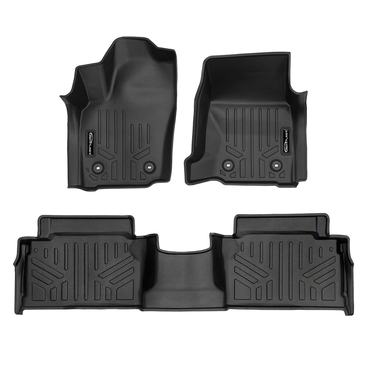 Full Coverage Interior Defense. The SmartLiner Smart Coverage Custom Fit Front and Rear Floor Liners provide comprehensive all-weather protection for your 2024 to 2026 Toyota Tacoma Double Cab with automatic transmission and under seat rear storage. Designed to trap water, mud, and debris, these liners keep your interior clean while maintaining a sleek, factory-style appearance.