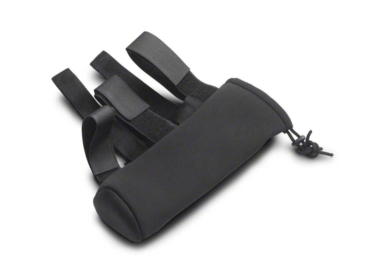 Secured Safety. Designed to work with 2.5lb fire extinguishers, this holder keeps your extinguisher safe and secure due to its superior durable padded construction and design. The holder comes manufactured for use with 1.5-4” Jeep Wrangler sport and roll bars and is available in black.