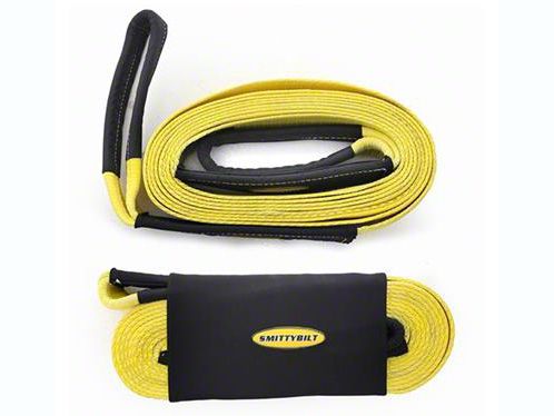 Be Ready for Recovery Applications. One of your rig’s superpowers is its ability to perform recovery applications. Be ready for that kind of hard work whenever and wherever it is needed. Keep this Smittybilt 4 in. x 20 ft. Recovery Tow Strap - 40,000 lb. handy in your vehicle. The recovery strap is built for versatile and heavy duty use. It is colored yellow with some black to make it easy to see.