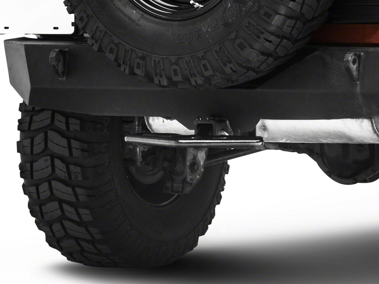 Tough Hitch Step and Tow Point. Most aftermarket hitch steps are single purpose as the name implies and necessitates removal of that step whenever you actually have to tow something, even temporarily. This Smittybilt Beaver 2 in. Receiver Hitch Step is not only a solid durable hitch step, it's also a strong tow strap point which you can use any aftermarket tow strap and secure it on to the hitch step. It has a design for a secure mount that prevents the strap from slipping for short distance towing in a pinch. The arrowhead design also adds an interesting design element to the otherwise empty tow receiver in the back of your Jeep.