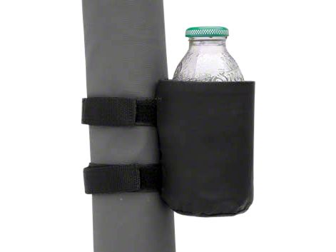 Relief Ready to Hand. Putting a refreshing bottle of your favorite beverage within easy reach for refreshment on the hot, dusty trail, the Smittybilt Black Roll Bar Drink Holder Mount is a universal part for any year Jeep Wrangler that has a standard roll bar handy. Made out of black nylon, each of these drink holders attaches to a roll bar with two straps, which are fully adjustable hook and loop or Velcro types. The drink holder is padded so that you can safely carry glass bottles in it as well, without worrying about them breaking the heavy bump makes them whack up against the bar. The padding also insulates the bottle somewhat to keep the drink cooler.