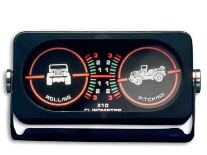 Enhance Your Off-Roading Experience. Install this Smittybilt Clinometer I w/ Jeep Graphic to make your off-roading adventures more interesting. You get two gauges in one, so you know your side-to-side and front-to-back angles at a glance. The numbers on this clinometer are large enough to read easily, so you don’t have to strain to see them. The Jeep graphic accents the look of this clinometer with rugged style.
