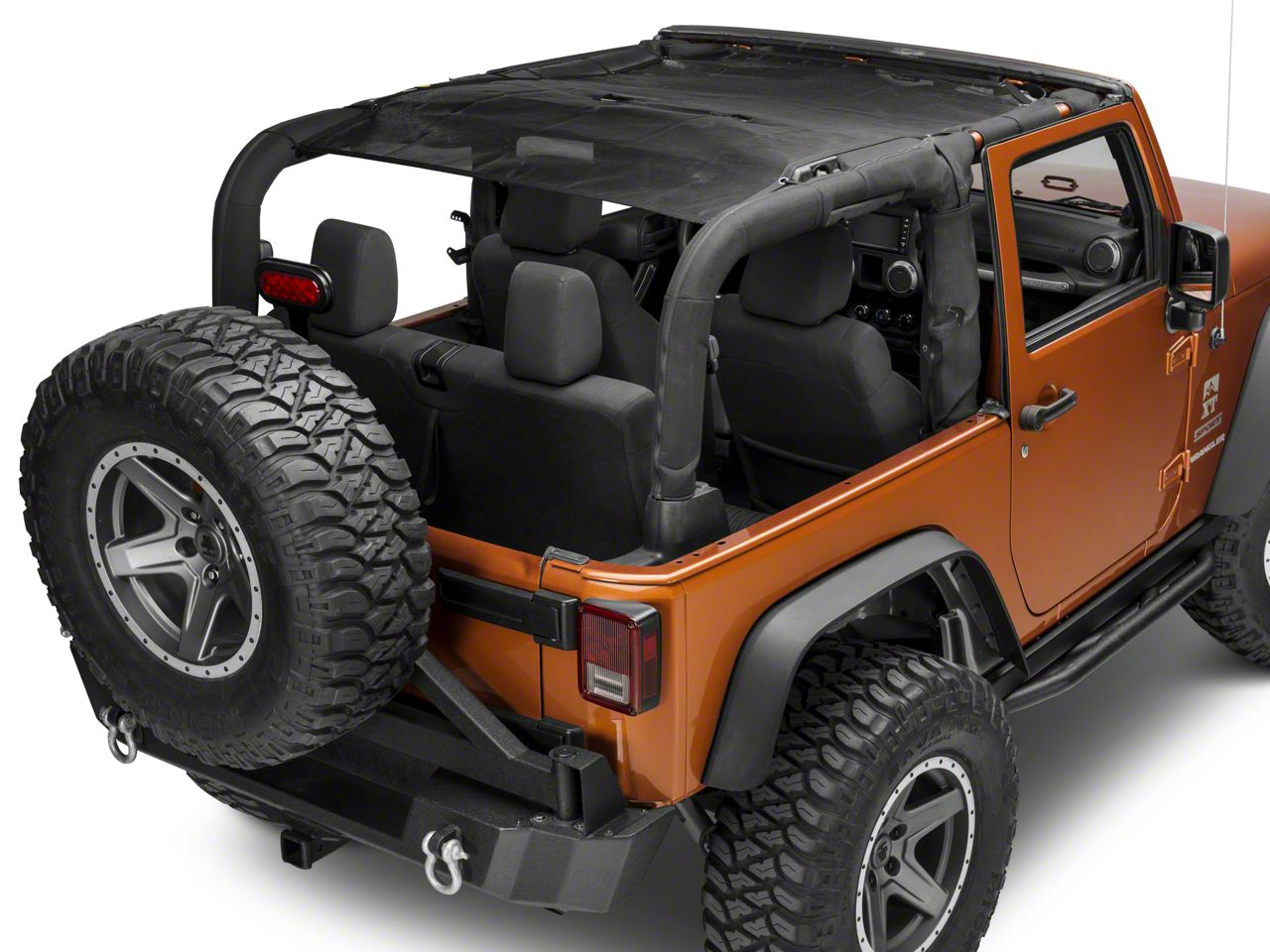 Protect from the Sun. If you want to feel the fresh air as you travel, but you do not want to experience the sun on your shoulders, the Smittybilt Cloak Extended Mesh Top makes it possible to enjoy the best of both worlds. You can freely ride around and enjoy the breeze without worrying about fading your interior. The extended mesh top will protect everyone in your 2007-2018 JK 2-Door. One of the nice things about this mesh top is that it will allow you to retain that sleek look of your Jeep.