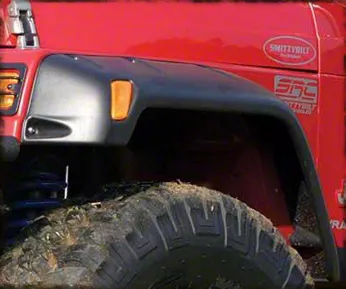 Design. The Smittybilt fender flares add six inches of coverage, yet are still street legal. Made with strong, textured ABS plastic, they're tough enough to take on the trail. The UV resistant plastic stands up to the sun, providing years of fade-free wear. Mastering the balance between flexibility and resiliency to cracks, these flares can handle anything and are built to last.