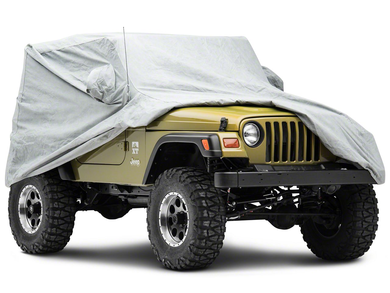 Dirt Out. Don't let dirt, debris, and moisture settle on your Jeep! Whether under the trees or in a car port in your driveway protect your vehicle with this Smittybilt Full Climate Jeep Cover.