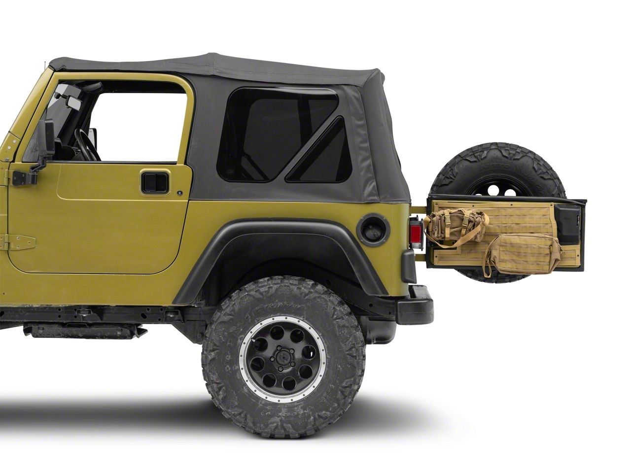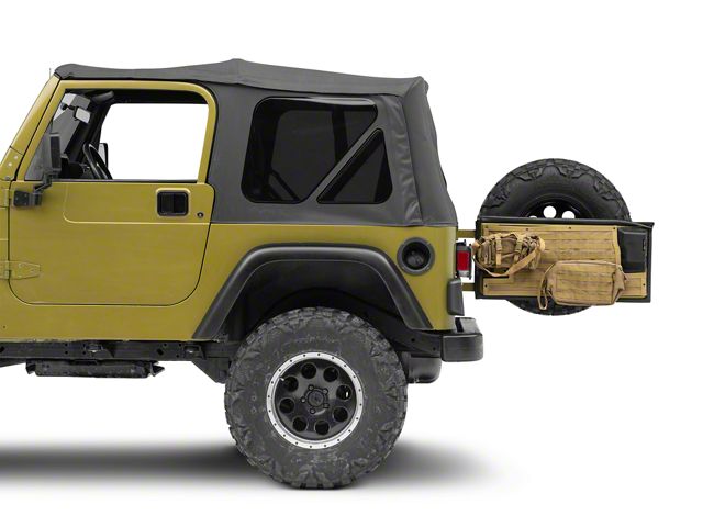 Storage Benefits. The storage solutions offered in this cover are virtually endless, thanks to the fact that other bags can be strapped to the gate. Essentially this kit offers an easy to install rack that can accommodate any bag, including the two large storage bags that come with it. This is the perfect place to store camping gear, gym gear, hunting gear, off-roading gear – and more!