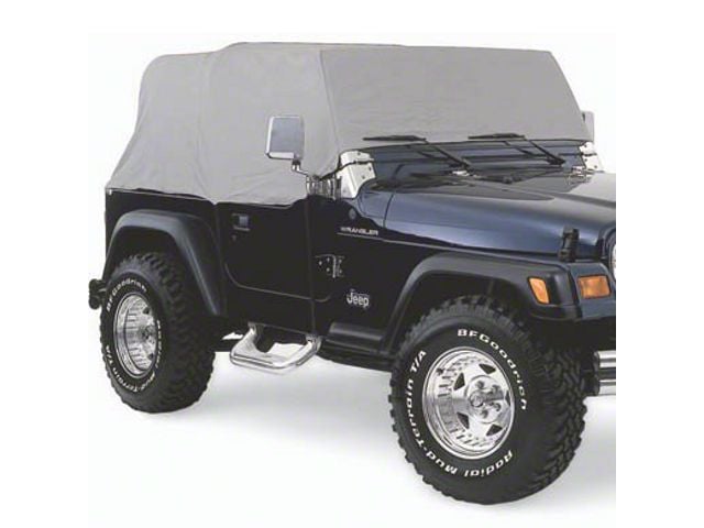 Quality Construction.Made from a gray denim colored space age polypropylene fabric, this Smittybilt cab cover is water resistant and is a must have item when riding around or wheeling without a top. Just in-case weather changes and a few showers roll in, this cab cover literally has the interior of your Jeep covered!
