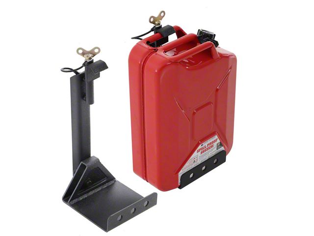 Black Powder-Coated Steel. This fuel can holder consists entirely of durable steel designed to provide the strength and durability you need to safely transport fuel cans up to 5 gallons in capacity. In addition, this mounting bracket is treated with a black powder coating for resistance against abrasion, corrosion, and rust. As a result, this mounting bracket guarantees long-lasting use without fear of falling apart during transport.Â