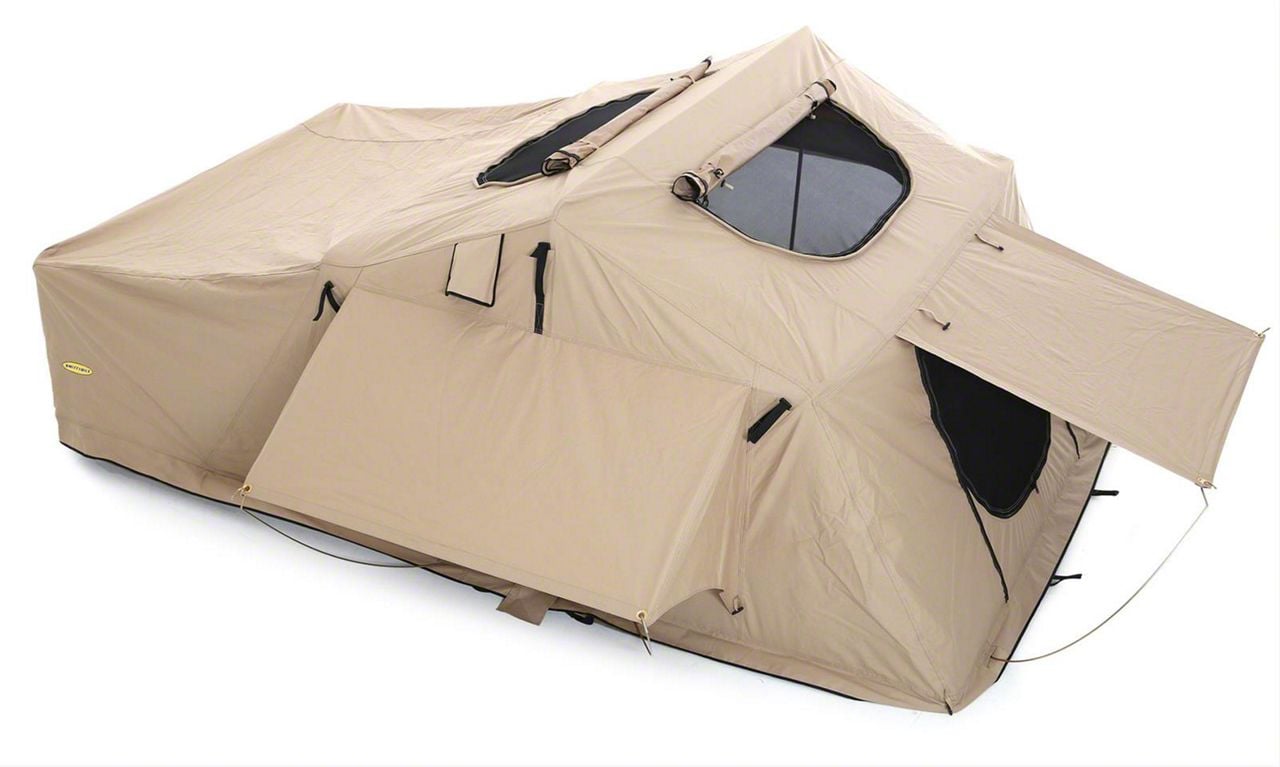 Application. This Smittybilt Overlander XL Roof Top Tent with Coyote Tan color offers a universal fitment.