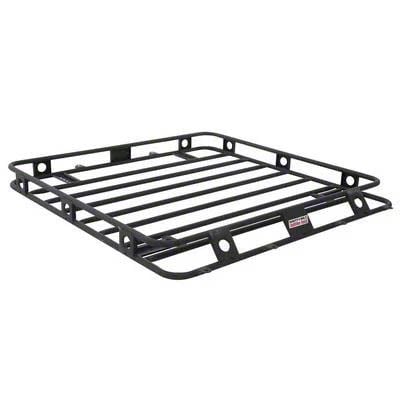 Great Loading Capacity. Hauling bulky cargo onto your Jeep Wrangler should not be a problem with this Smittybilt Welded One-Piece Defender Roof Rack 4.50 x 4.50 feet. This basket-designed rack can handle up to 150 pounds of evenly-distributed loads. With heavy-duty capacity, you can now transport bulky or odd-shaped items easily and without straining the interiors of your Jeep. For specialized cargo like sports gear, tires, or trail jacks, this roof rack can be outfitted with adapter brackets.