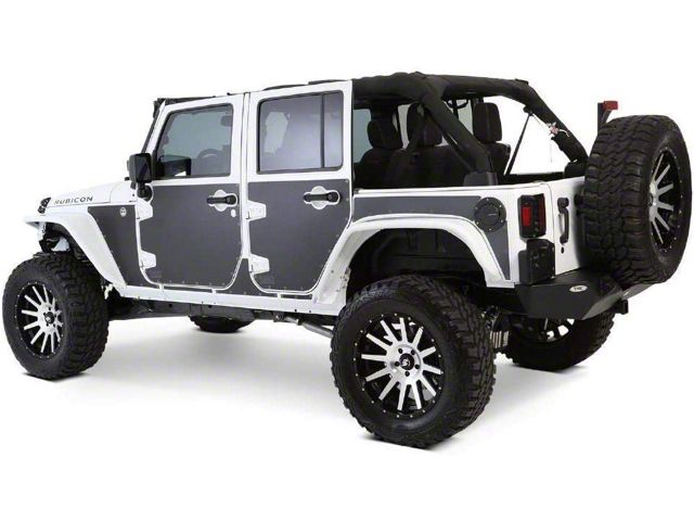 Three Layers of Protection. This trail skin uses an advanced 3-ply construction to protect your Jeep’s exterior. A PVC outer layer in a matte black finish protects from impacts and scratches, the middle layer is made of a rare earth magnet to securely attach the skin to the vehicle, and the inner layer is a UV-hardened coating that protects the vehicle's paint job. This armor is also rated 80 mph so you don’t have to worry about getting detached while driving down the highway.