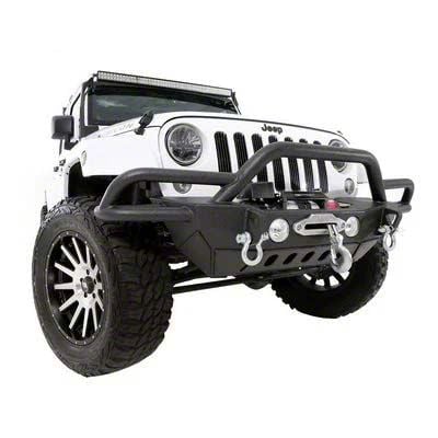 Smart Features. This Gen2 Front Bumper from Smittybilt includes an integrated winch mount that is capable of holding up to a 12,000-pound winch. The winch plate on the front bumper has been redesigned so now it sits lower, giving increased airflow to the radiator. You'll also appreciate the D-ring mounts that are welded on both the inside and outside of the bumper and the light tabs that can hold a pair of 9-inch lights.