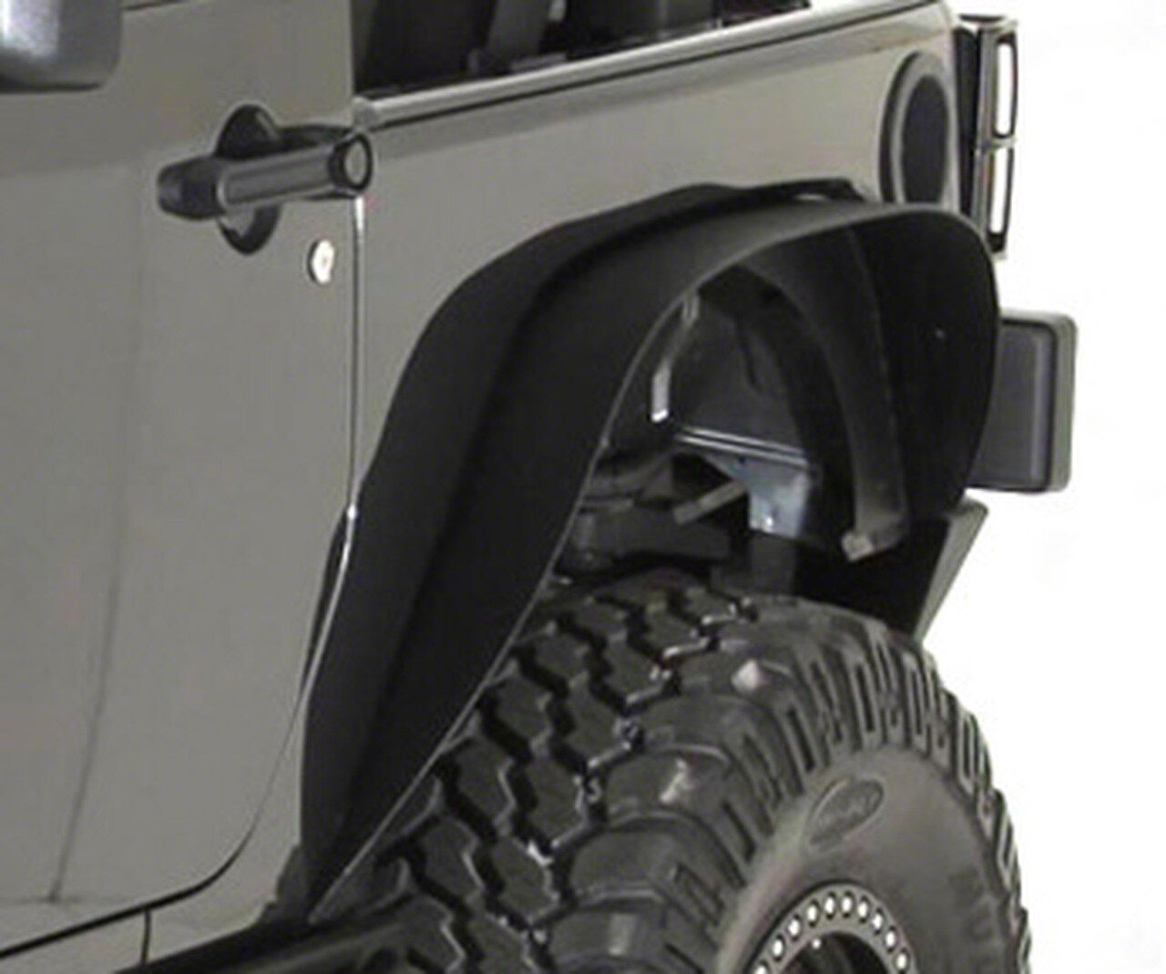All-Terrain Ready. Keep your Jeep’s side panels from getting scratched and dented when off-roading by adding the Smittybilt XRC Flat Fender Flares. These fender flares stylishly transform your vehicle and accommodate larger aftermarket tires. Moreover, each piece provides added protection to your Jeep’s body from mud or road debris that are kicked up by the tires. These flat fenders also bring a bolder style, while concealing the existing damages on your wheel wells.
