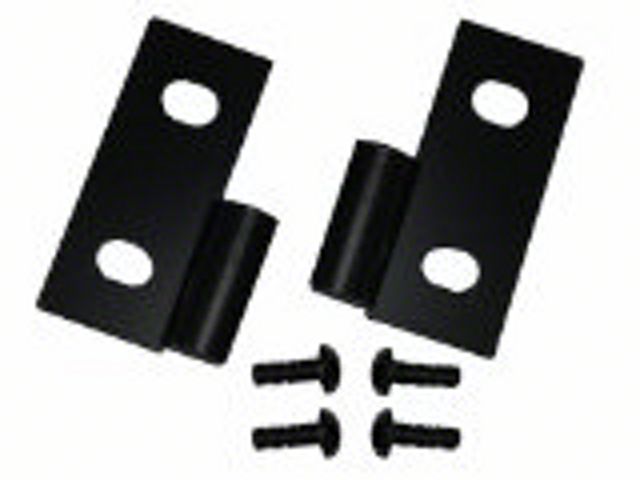 Specs. You can give your Wrangler a hard-edged, stealthy look with the Black Lower Door Hinge Brackets, a product of Smittybilt. A matte black powder-coated finish is applied to these steel parts, making them proof against rust and giving them a distinctive look. These one-piece components are built for sturdiness, durability, and reliability, and look great, to boot. They are sold as a pair, and can be used either to provide a replacement part for damaged stock hinges or as part of a custom aesthetic upgrade project.
