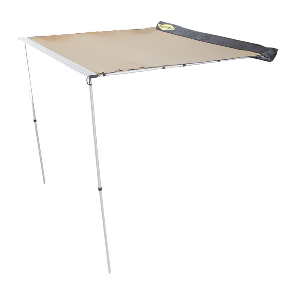 Strong and Durable. This tent awning measures 6.5 feet x 6.5 feet, so there’s plenty of room to relax. The base is crafted from aluminum and polyurethane for excellent strength and durability, and the awning itself is made from 600D heavy-duty polyester that’s rip-resistant and weather-resistant. The tent frame poles have anodized aluminum construction for impeccable stability and resistance to rusting and corrosion.