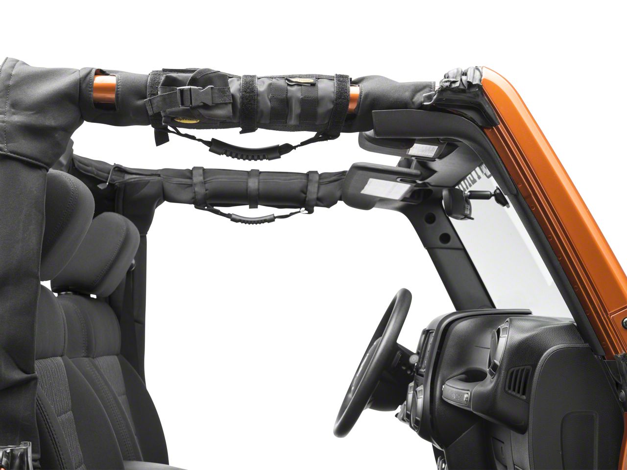 Nice Fit. These molded rubber and vinyl handles are designed to hold tight to your 2-3" sport bar without slipping or sliding. A hook and loop attachment system holds tightly as well, making certain your grab handles won't slip when you need them most.