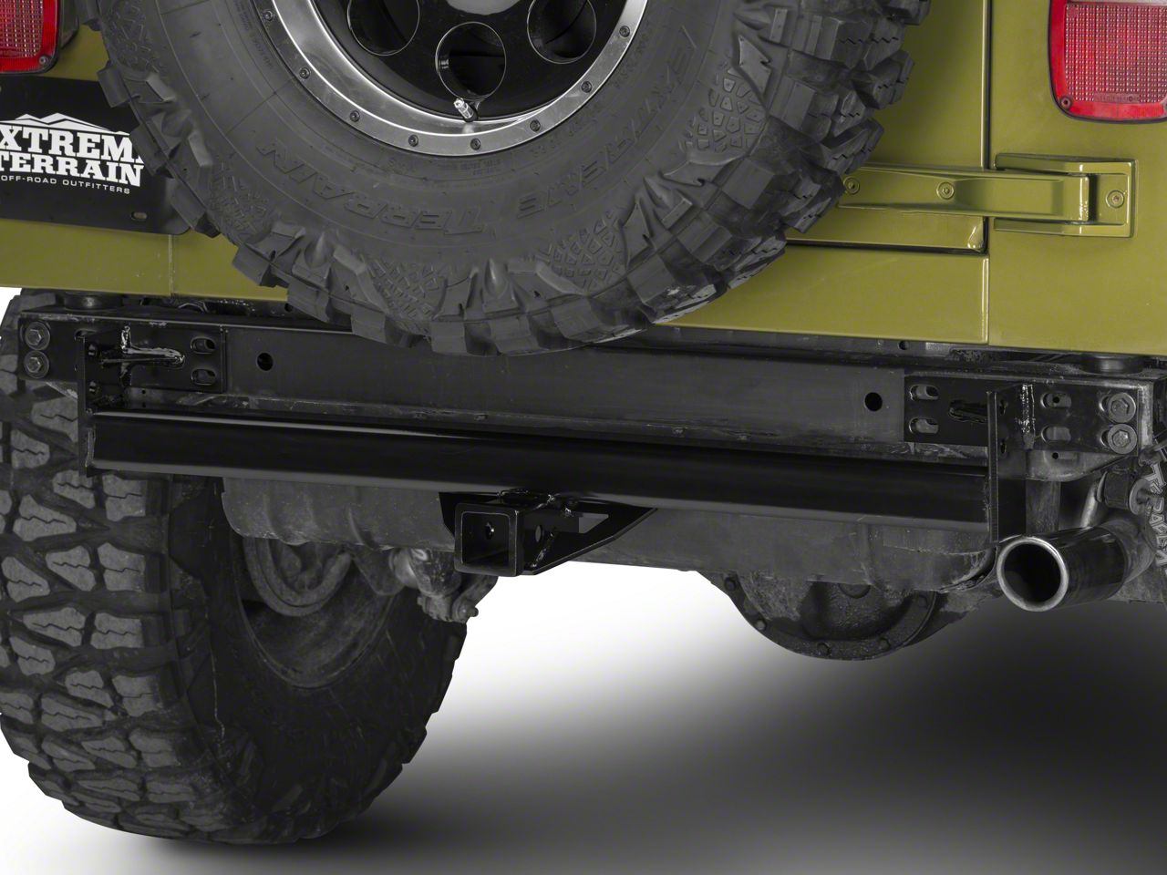 Application. This bolt-on receiver hitch fits 87-06 Jeep Wrangler YJ and TJ models that are using the Smittybilt Rear Tube Bumper without hitch in Textured Black, Gloss Black or Stainless Steel