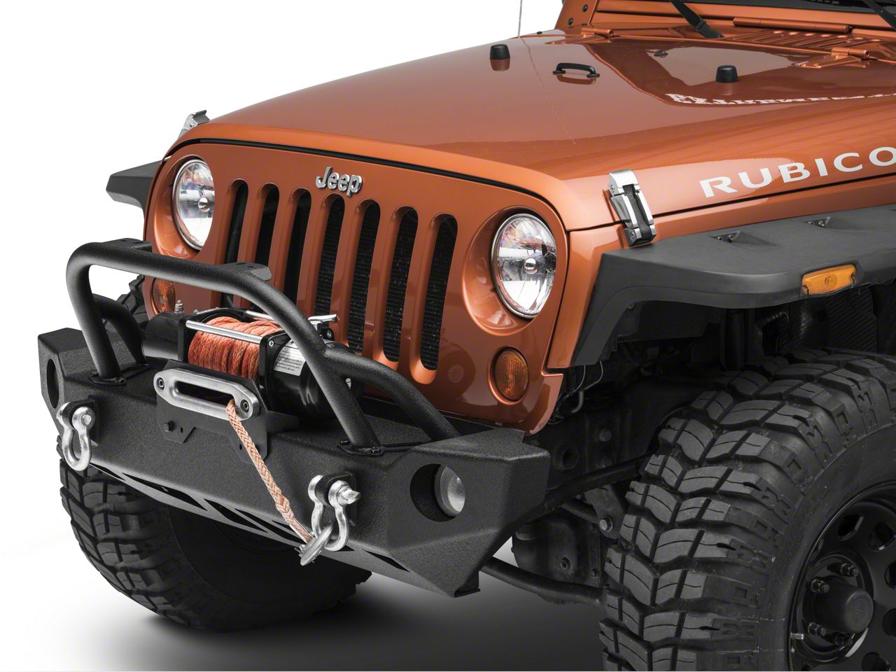 Solid Carbine. Manufactured from 3/16” cold-rolled steel with a signature two-stage matte black finish, the SRC bumper features a 1.75” removable overrider with light mounting tabs and comes specifically constructed to retain your original factory fog lights. Its new mid-width open top/side design accommodates all winches up to 12,000 lbs. while its raised corners allow for better entry and exist under extreme conditions. Also featured are exclusive triangulation anchors that fasten to the frame in numerous locations and solid 3/4” D-Ring mounts.