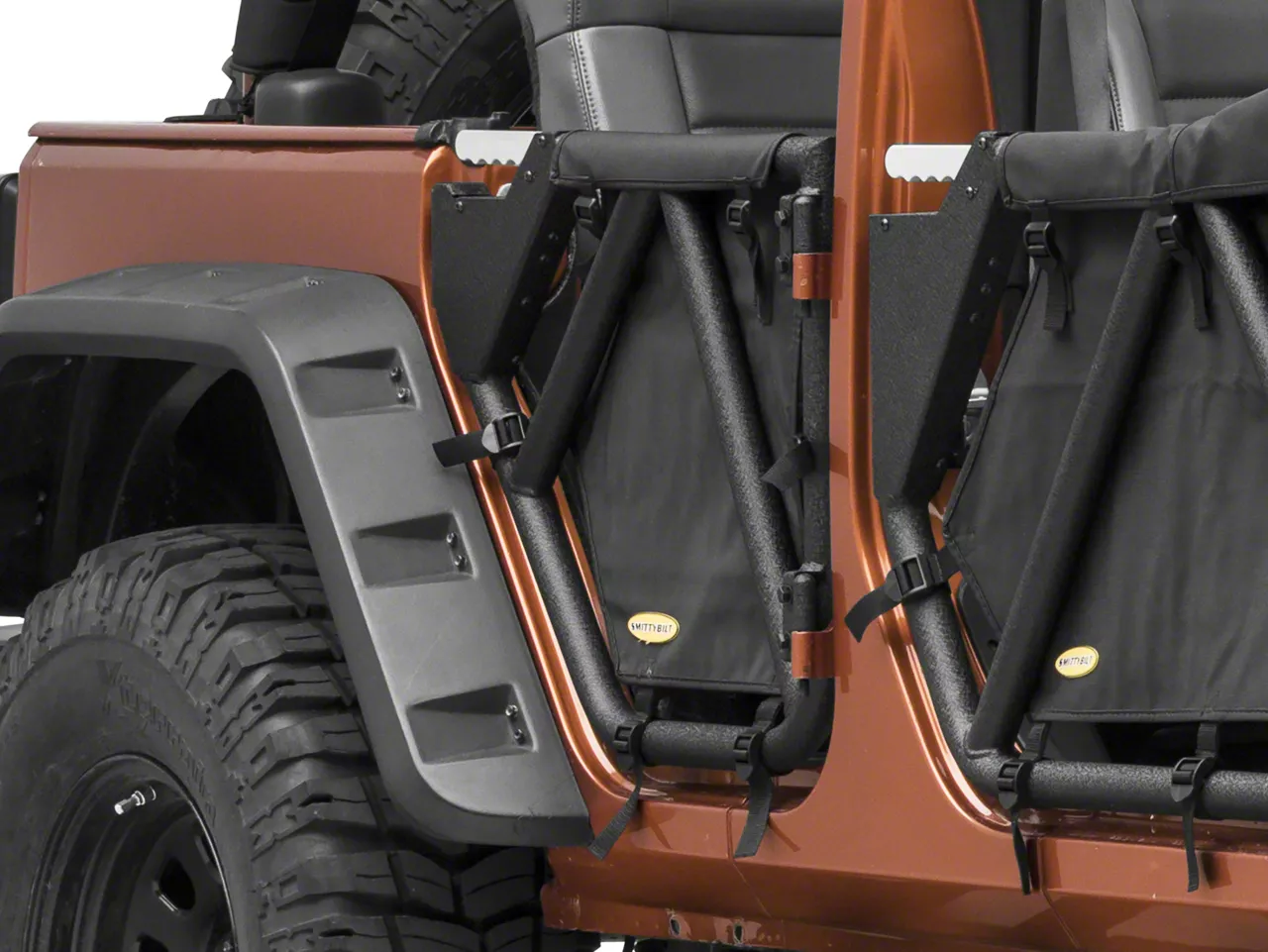 Installation. These rear tube doors allow for a bolt-on installation to your Jeep’s existing factory hinges. The door comes fully assembled and no modifications are needed for a successful install.