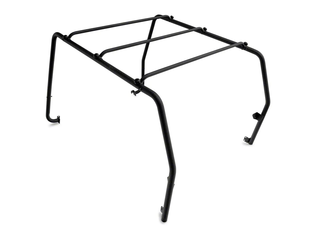 4-Point Rack. Made from high-quality 2 x .120 wall steel tubing with a textured black powder coat finish, this roof rack utilizes a 4-point mounting configuration that is aided by superior 1/4 brackets. The rack also features removable cross bars for soft or hard top removal. The crossbars come designed to accommodate almost all aftermarket accessories.