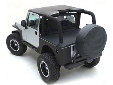 Quality Construction.The Smittybilt standard black soft top is anything but ordinary. This soft top is made from a high quality black denim material that is sure to keep nature's elements out of your YJ.