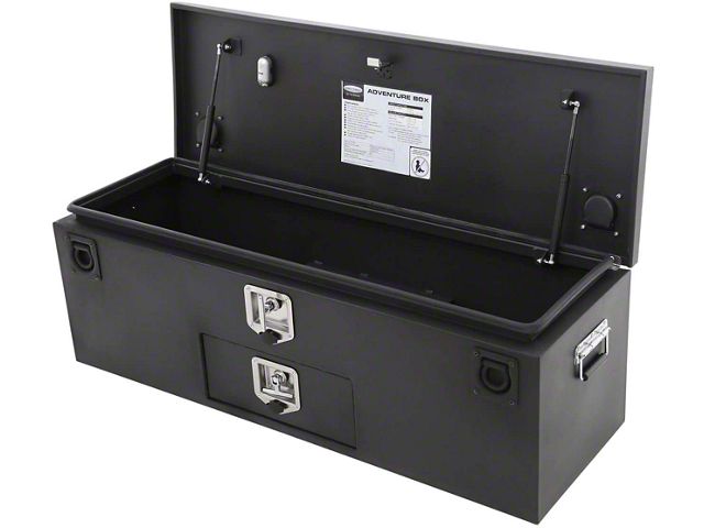 Steel Construction. Smittybilt Tacoma Adventure Storage Box is made from durable 16-gauge steel for excellent temperature and impact resistance. Matte black powder-coated finish is versatile and will suit the bed of any truck. An interior LED light enhances night-time visibility, allowing you to find the necessary tools even if your flashlight or phone isn’t around. Spring-loaded D-ring anchor points ensure easy opening and closing.