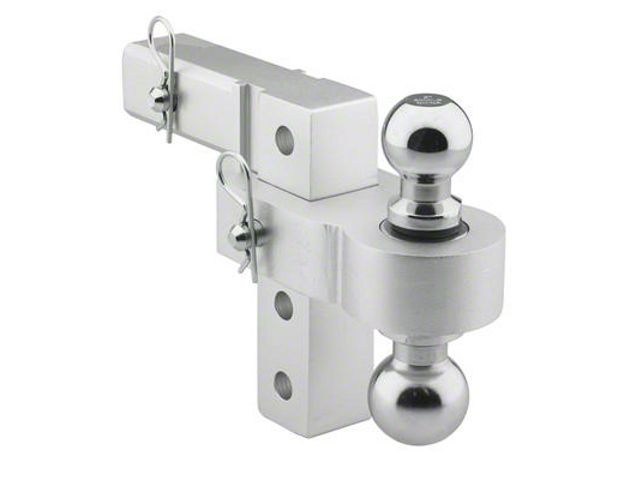 Heavy-Duty Construction. The Tacoma Trailer Hitch 6-Inch Ball Mount Drop is made from high-grade billet aluminum, and it’s completed with a polished chrome finish. This ball mount drop comes with stainless-steel locking pins, clips, and two chrome hitch balls. It can even be secured with a locking mechanism, which is sold separately.