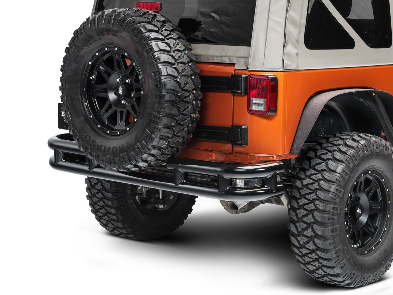 Construction. Equip your Jeep with a unique style and top level of protection with this stainless steel rear tube bumper that has a dual powder coated gloss black finish. This rear bumper gives your Wrangler JK the durable protection needed when running trails without sacrificing looks.