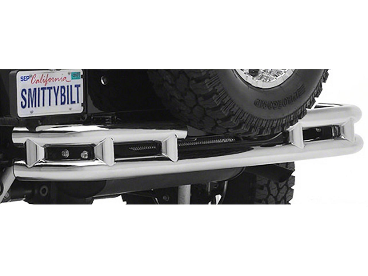 Function. This Smittybilt Stainless Steel Tubular Rear Bumper protects your vehicle's rear end during adventurous off-road rides. It includes a tow hitch receiver that can conveniently accommodate towing weights up to 2000 lbs.