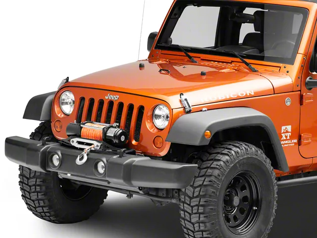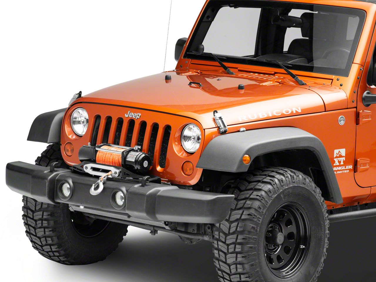 Construction. This winch plate is custom made for the Jeep Wrangler and delivers strength when and where you need it most. This plate can carry a winch with up to 10,000 lb. of capacity. It comes in two styles and allows you to choose between an elevated or flat style. The elevated design is perfect for oversized bumpers and eliminates roller fairlead interference, while the flat option offers more elbow room for bigger winches. It comes with all mounting hardware, and bolts easily onto your Jeep's front end for a quick installation. It includes a limited lifetime warranty for your added protection.