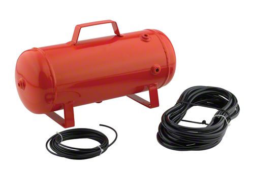 Steel Tank. Created from high-strength steel, this air tank is guaranteed to remain reliable in the most challenging conditions so you're able to take on the toughest trails without a problem. With 2 convenient ports for quick and easy use as well as an impressive max air pressure of 150 psi for an unbeatable performance, this air tank is made to please. In fact, it even comes with a pressure gauge, nylon hose, 90-degree elbows, and quick connect studs to ensure you're able to install and use it without a problem.