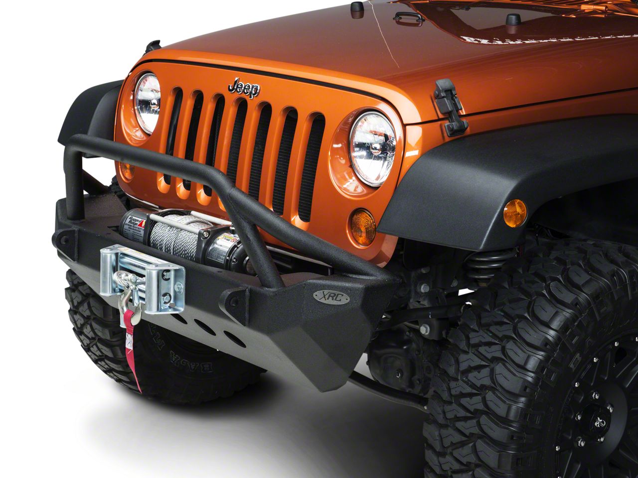 Bumper Construction. Smittybilt's XRC armor front bumper provides ultimate protection and clearance. Designed with 3/16 inch cold roll steel and finished with a durable powder coat finish. Properly equipped, the bumper can support up to a 10,000 lbs winch and up to 9 aftermarket lights, giving you the freedom to add future parts as you see fit.