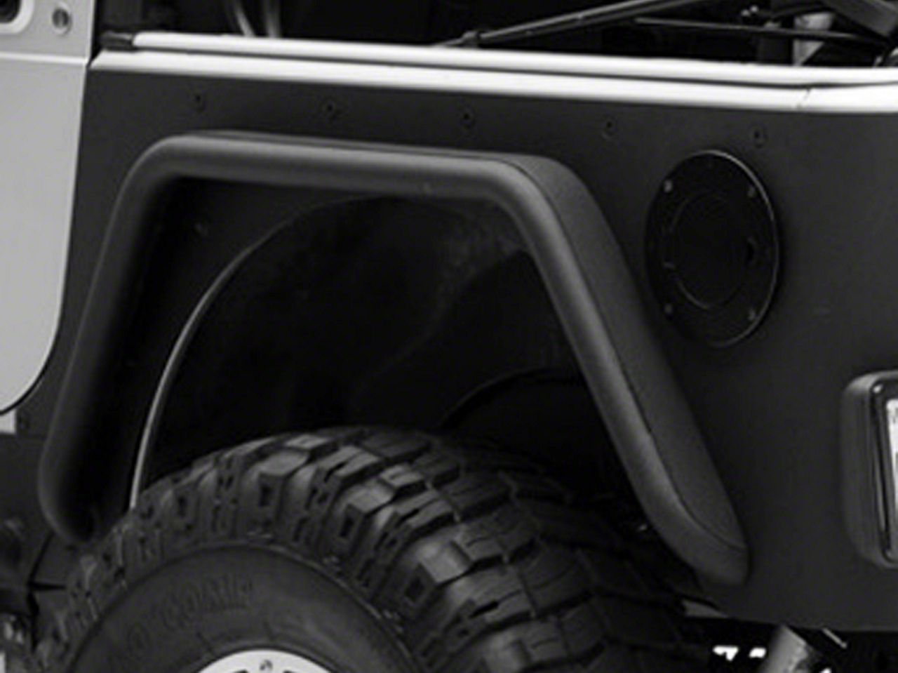 Rugged Look. Your 1997-2006 Jeep Wrangler's appearance will greatly benefit from Smittybilt's Black Textured XRC Armor Tube Fenders with 3 in. Flares. These fenders are specifically designed to give your Jeep that off road, rugged look that every Jeep driver works to achieve. Aggressively strong so that they can protect your Jeep from harm, these fenders not only offer tubular armor that guards against any obstacles on and off road, but they also relocate your Jeep's factory latch to create a finished look that will turn heads. Included with the fenders are 3 in. fender flares that give your Jeep that eye-catching design you've been searching for.